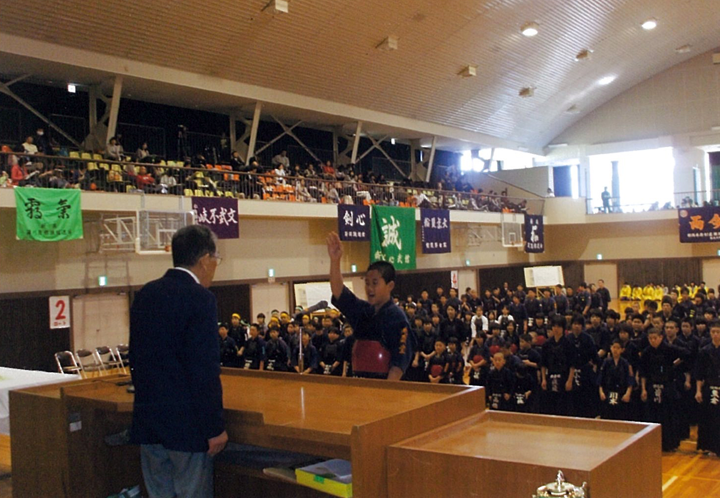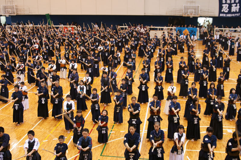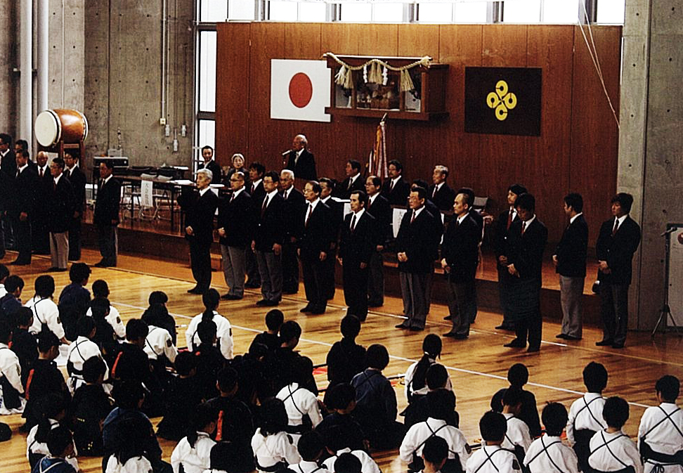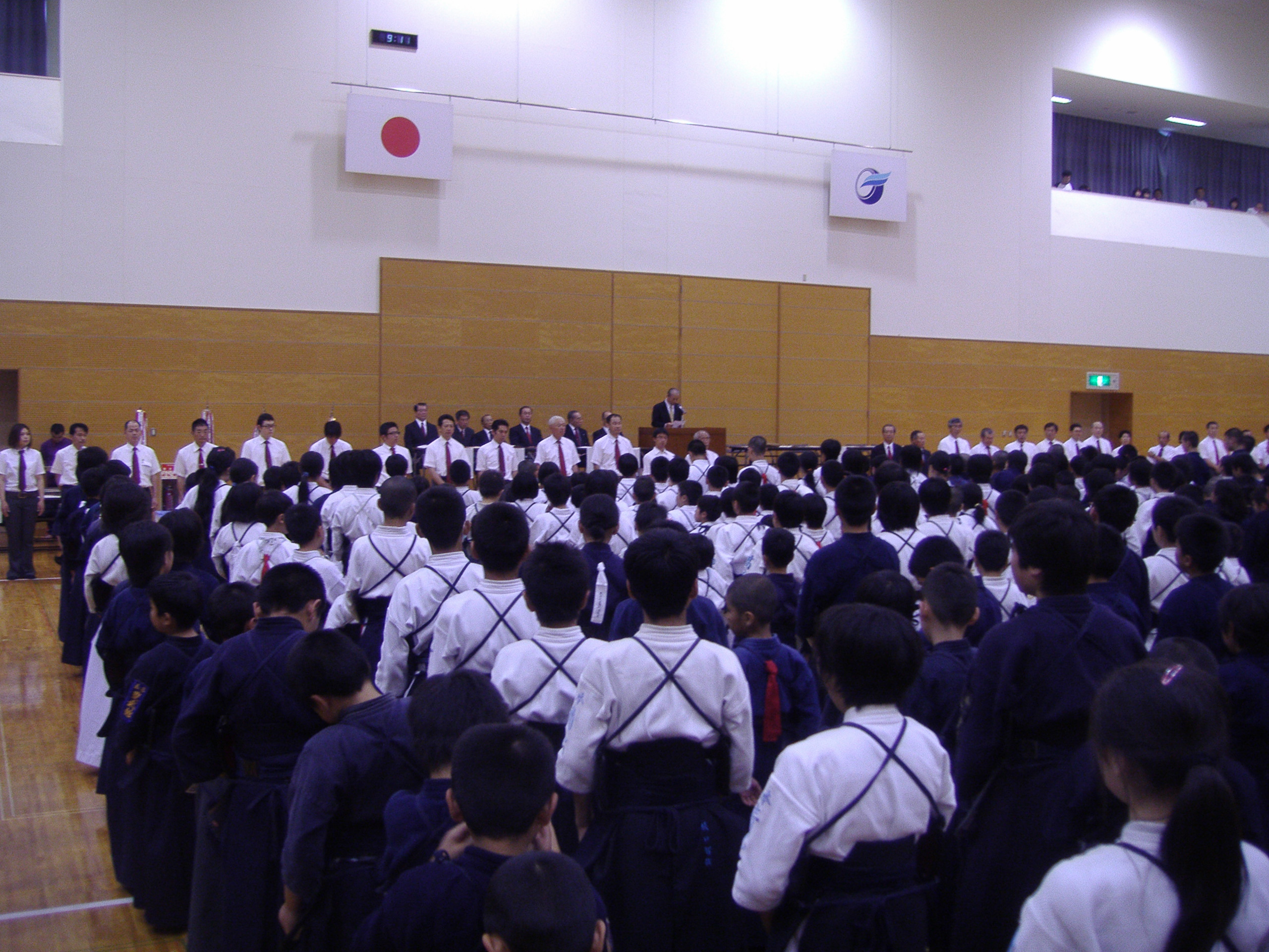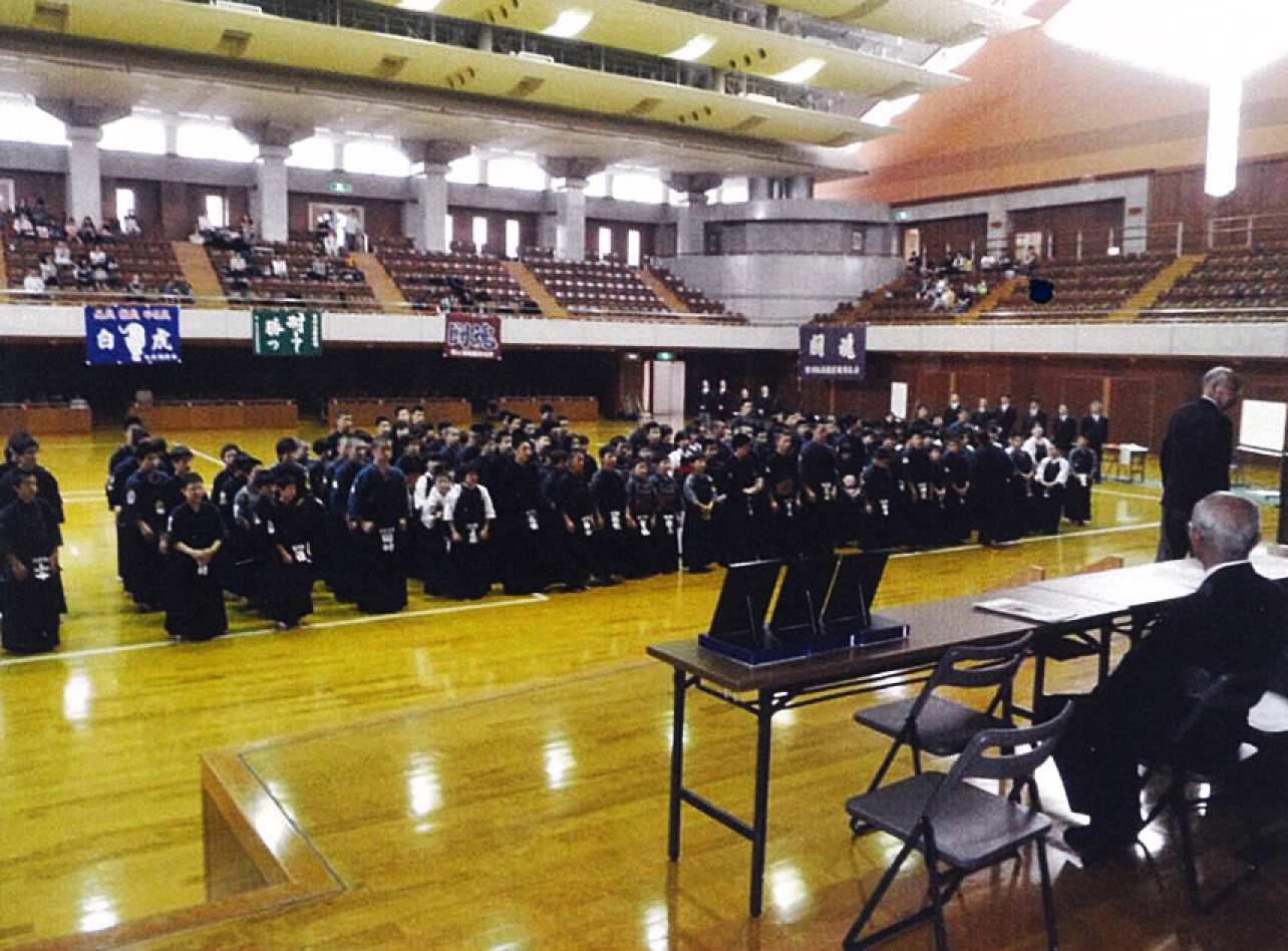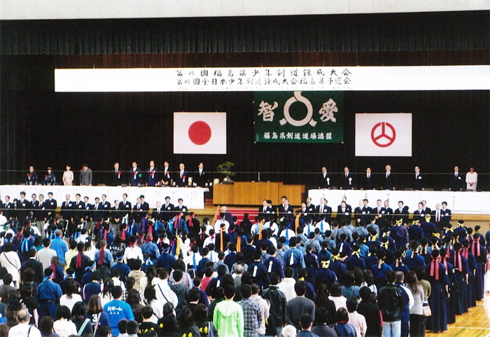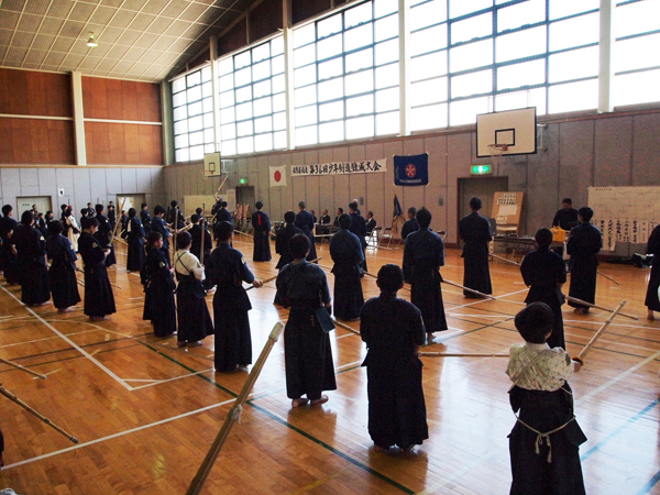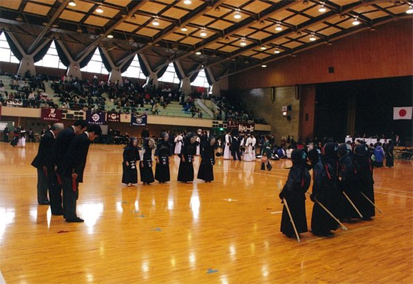 午前8時30分、原田源次先生(県剣連会長)、菊池啓一様(県防犯協専務理事)より、来賓祝辞をたまわり、審判長菅ア吉雄先生の説辞につづき、長沼友貴君(不動剣道豪気館)が選手宣誓を行い、閉会式終了後午前10時に試合錬成を開始した。 午後3時00分、第一会場において、小中学校の決勝戦を同時に行い、午後3時20分に全試合を終了、午後3時30分より表彰式、審判長菅ア吉雄先生より大会講評をたまわり、最後にア山貢(県道連会長)が閉会を宣言し、午後4時00、事故等なく全日程を完了した。 |