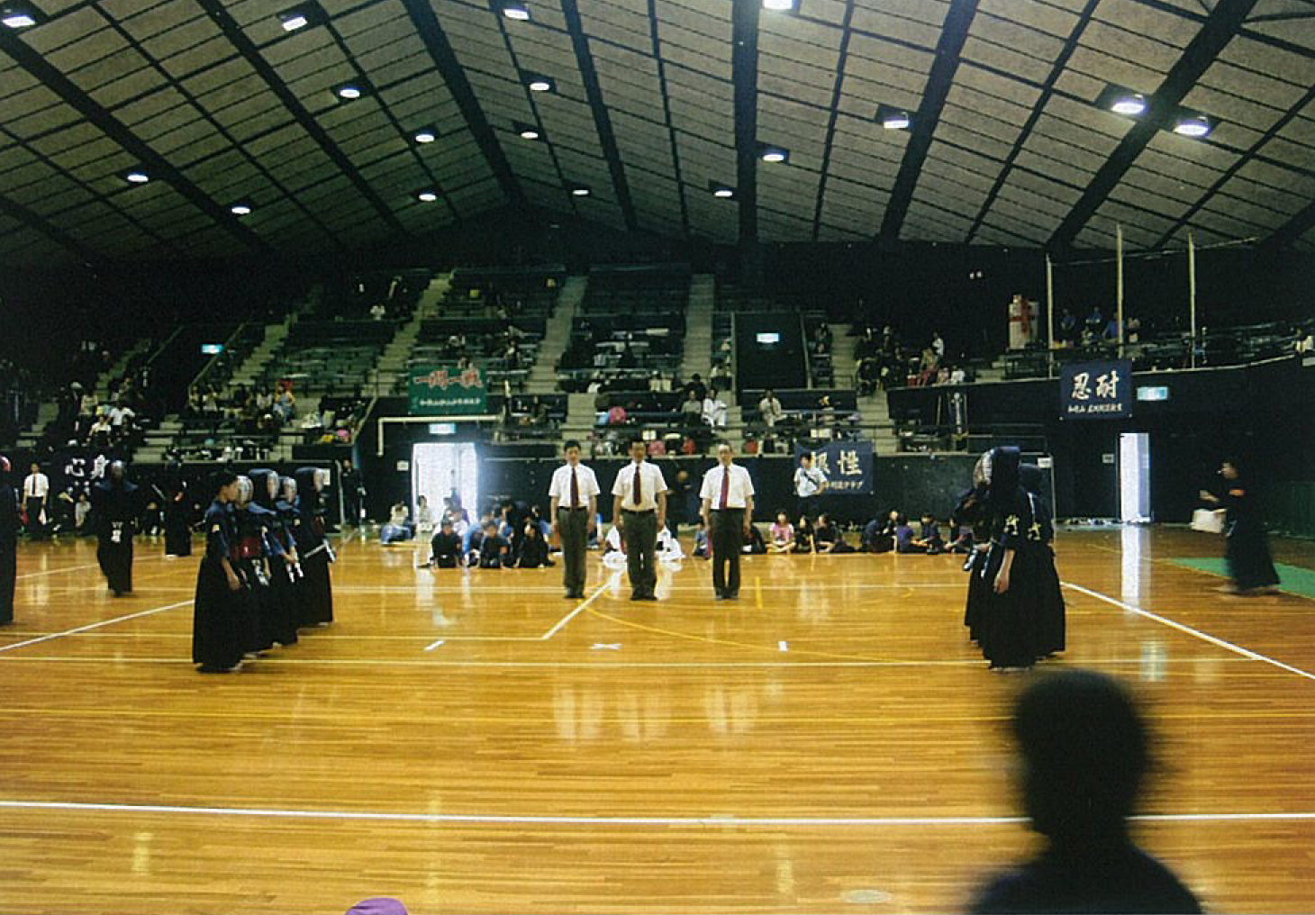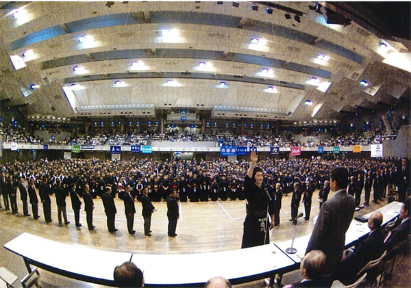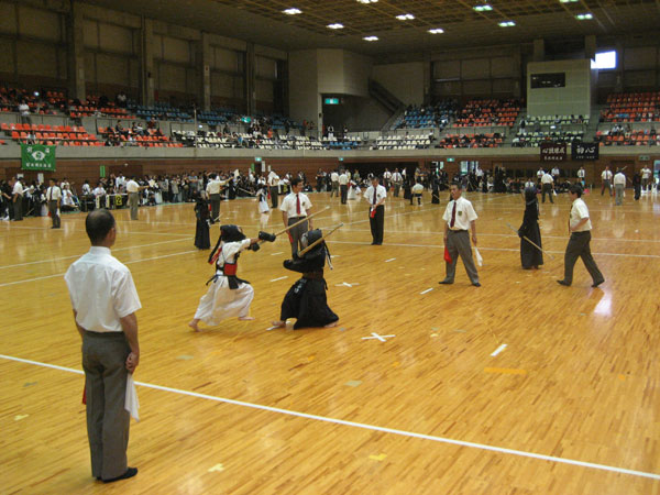 | 朝から雨が降る中参加者約1200名が東京武道館に集まりました。午前9時30分開会、10時試合開始、午前は個人戦、午後から小学5・6年生団体、中学生団体、小学生4年生以下団体を行い熱戦を繰り広げました。閉会式が18時過ぎと終了時間が遅くなってしまい審判の先生方には多大なご負担をお掛けしました。それと同時に感謝するところでございます。 |
