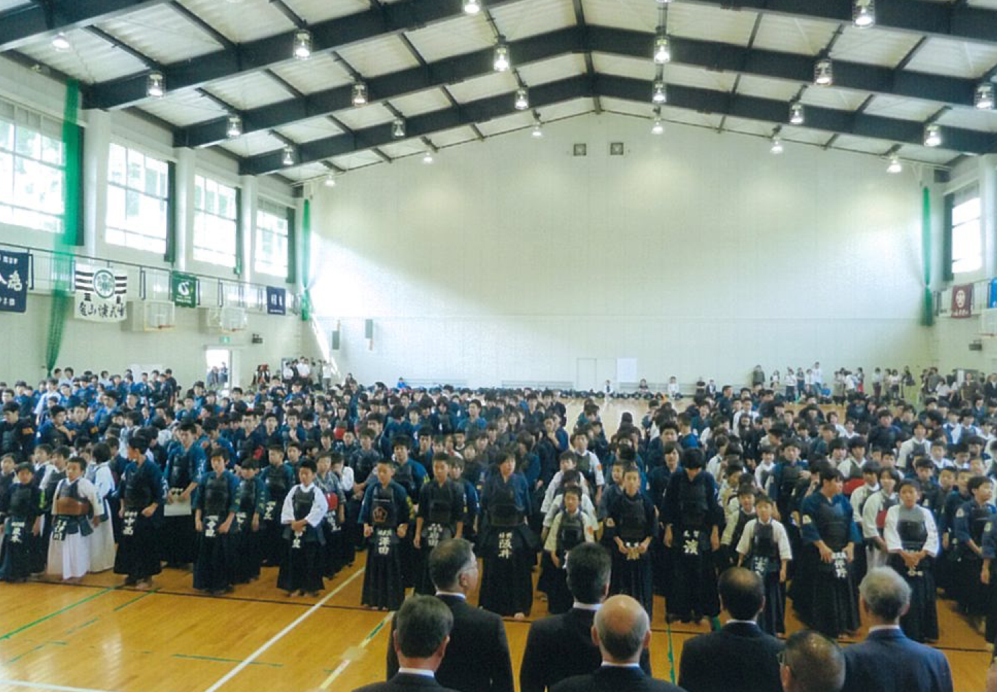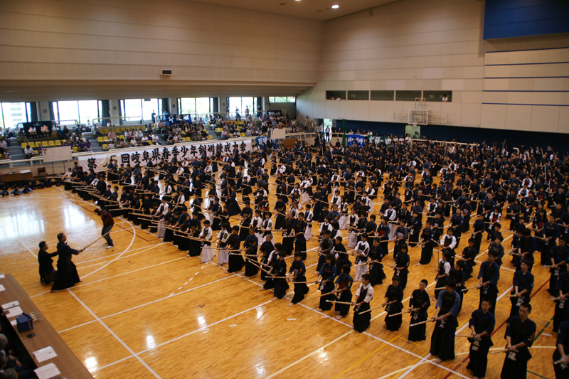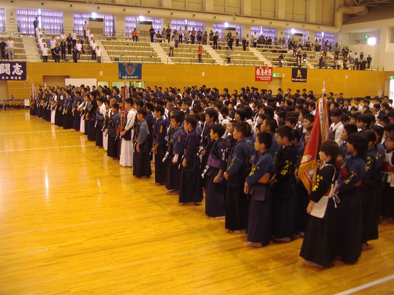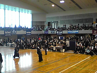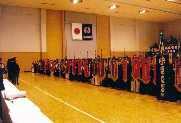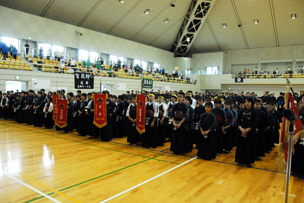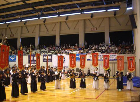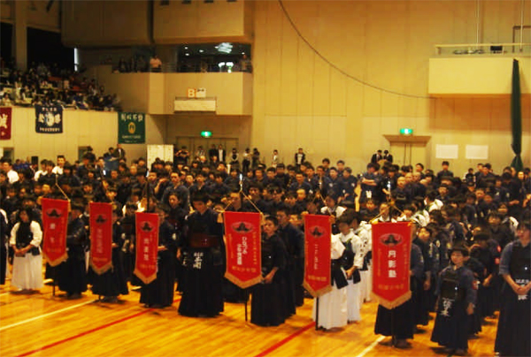 | 整然とした入場行進から始まり、厳粛な雰囲気の中で開会式が行われ、選手たちの健闘が期待できるものであった。その後の試合は,各道場全国大会出場を目指し、一戦一戦が白熱した試合を繰り広げ、日頃の厳しい稽古の成果が遺憾なく発揮されていた。 |